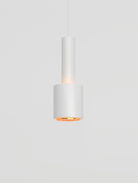 This elegant pendant light is nicknamed “Hand Grenade” for its distinctive shape. Composed of a lacquered steel shade and an inner ring, Pendant Light A110 provides an exceptional warm-toned quality of light. “Hand Grenade” projects both direct and indirect light onto ceilings, and its perforated inner ring creates a corona effect around the pendant light while simultaneously reducing glare. “Hand Grenade” was designed for the building Alvar Aalto created for the Finnish Engineers’ Association.