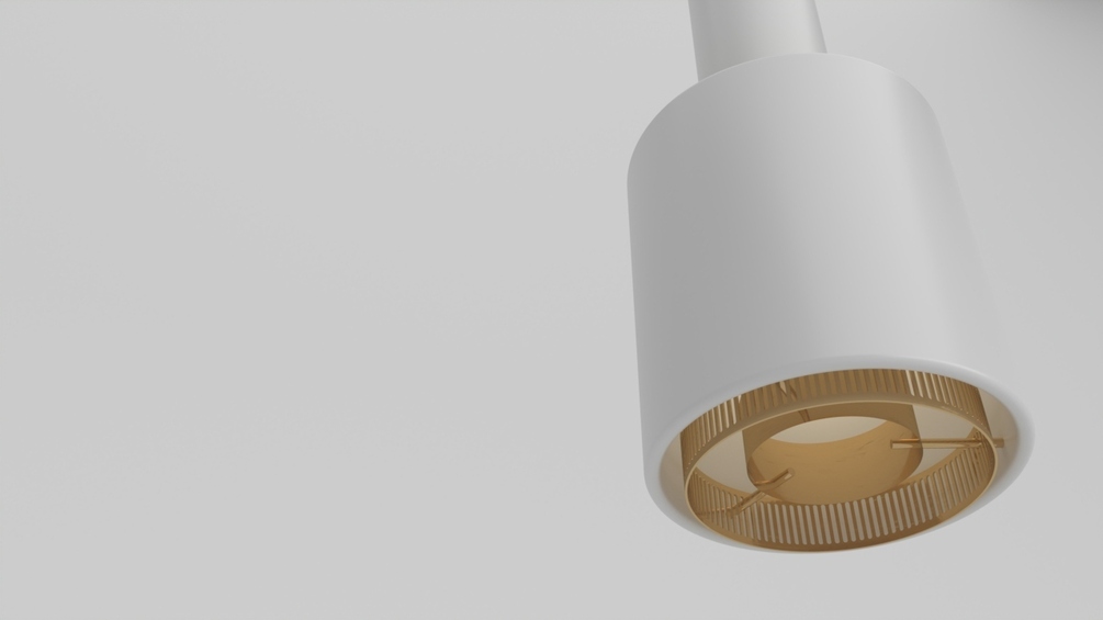 This elegant pendant light is nicknamed “Hand Grenade” for its distinctive shape. Composed of a lacquered steel shade and an inner ring, Pendant Light A110 provides an exceptional warm-toned quality of light. “Hand Grenade” projects both direct and indirect light onto ceilings, and its perforated inner ring creates a corona effect around the pendant light while simultaneously reducing glare. “Hand Grenade” was designed for the building Alvar Aalto created for the Finnish Engineers’ Association.