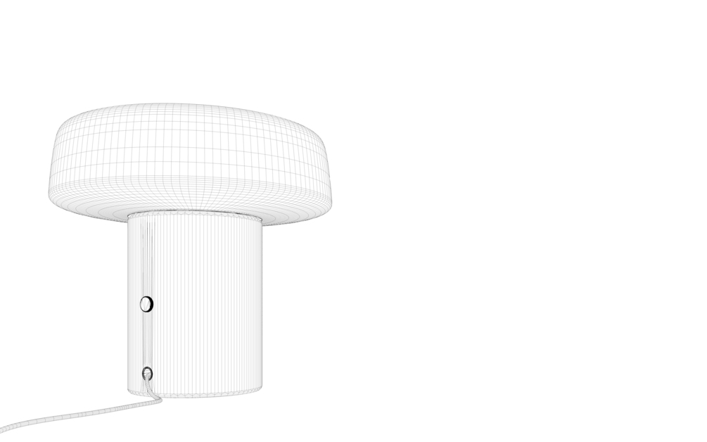 The light features a pure cylindrical base, crafted from solid fine-polished Nero Marquina marble, topped by a hand-blown opal glass shade which is acid-etched inside and out to provide a soft, diffused light.